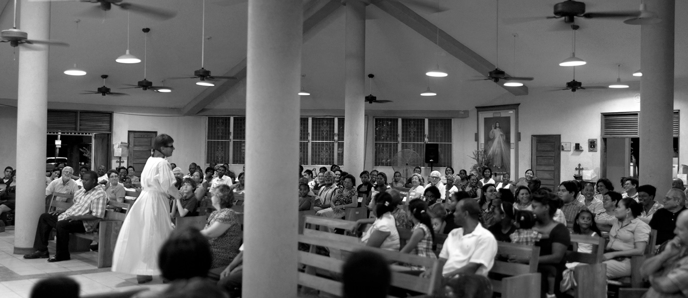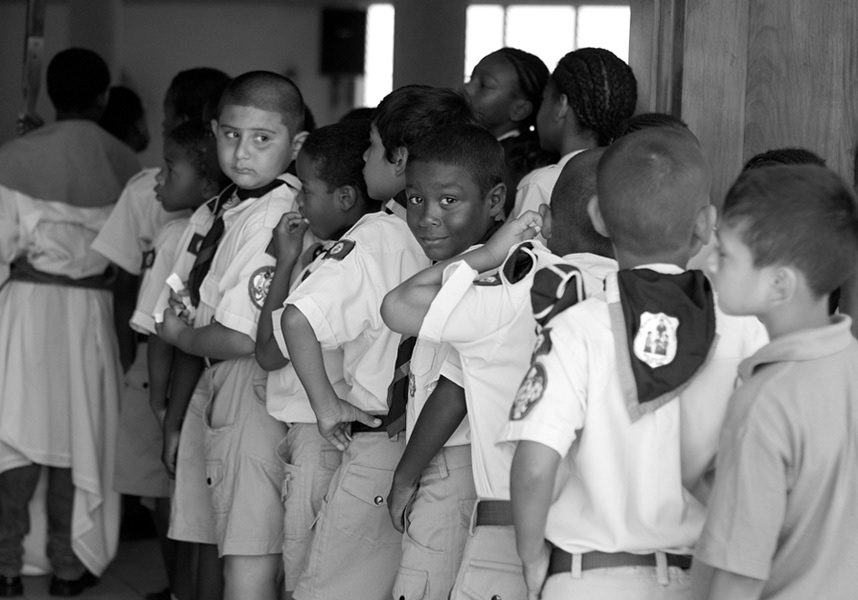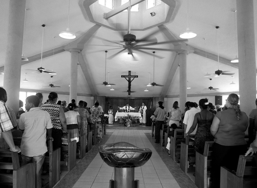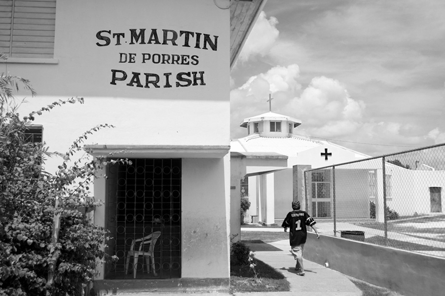Located in one of the poorest neighborhoods of small but bustling Belize City, St. Martin de Porres Parish nonetheless thrives as a church, school, and heart of the community. Photographed in August 2011.